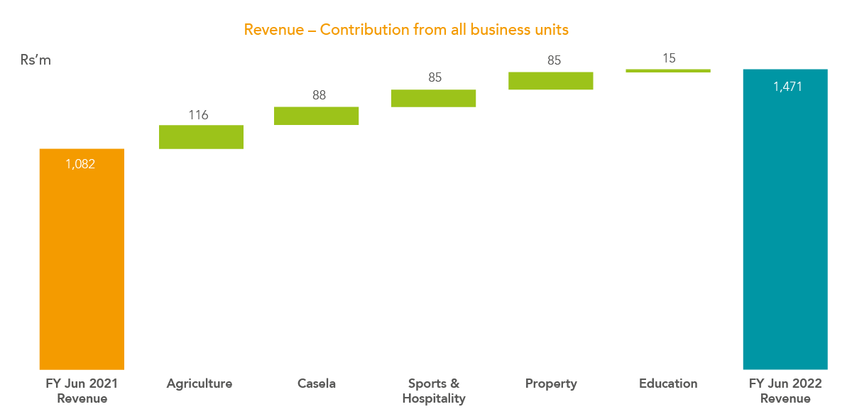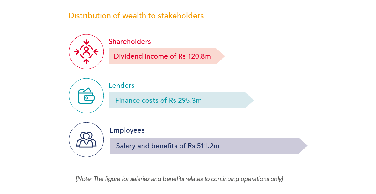 This was achieved through cost discipline and actions taken to achieve the Group’s objectives of reducing debt and increasing earnings. This year’s performance has enabled the Group to reach a milestone figure of more than Rs 1bn in profit after tax, while reducing its debt to Rs 5.6bn as part of its Target 4:4 strategy.