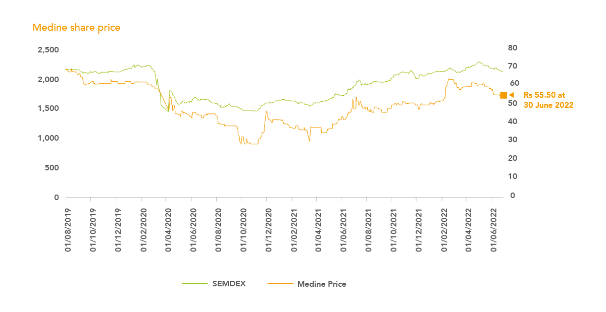 In the past year, Medine’s share price on the stock exchange increased from Rs 52.50 to Rs 55.50, demonstrating growing confidence in Medine’s performance and in the recovery of our activities following COVID-19.